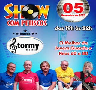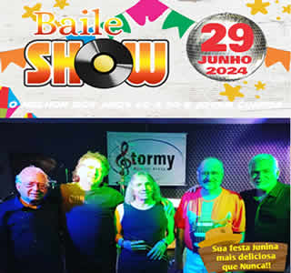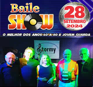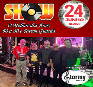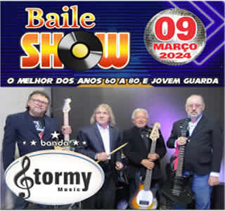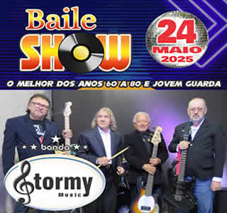A Banda Stormy Music estará realizando dia 24 de maio um um belíssimo Show-Baile a partir das 20hrs no Juventus, espaço Patrícia Vilaça. Neste dia vamos relembrar os grandes sucessos dos anos 60 a 80, nacionais e internacionais e Jovem guarda. Venham se divertir e dançar ao som da nossa música.