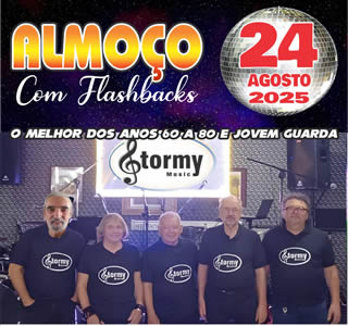 A Banda Stormy Music estará realizando dia 24 de Agosto um um belíssimo Show-Baile a partir das 12hrs no Restaurante ED Carnes. Neste dia vamos relembrar os grandes sucessos dos anos 60 a 80, nacionais e internacionais e Jovem guarda. Venham se divertir e dançar ao som da nossa música.